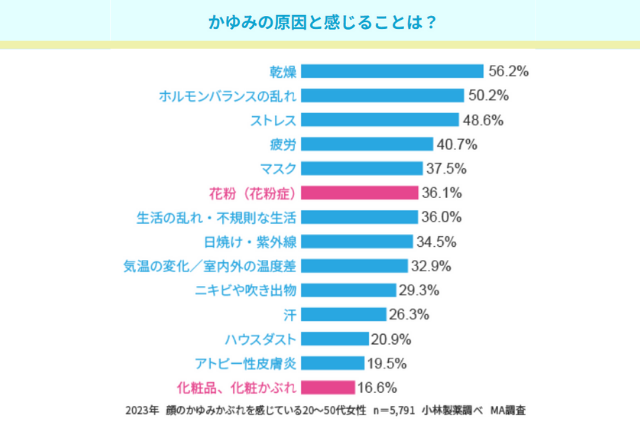 とくに女性は、ホルモンバランスや自律神経の変化によって、皮膚の炎症やかゆみが出やすい傾向にあります。
