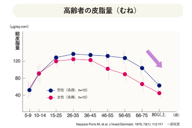 30代以降は皮脂量が減少していることがわかります。かゆみや肌湿疹を引き起こす原因はこちらです。